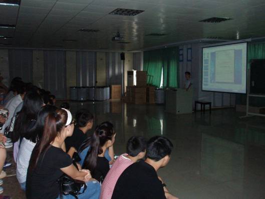 潘建树老师结合中国共产党党史,现状,以及发展学生党员的各方面规定,着重介绍了党的基本理论知识,如何端正入党动机、入党条件、入党程序、党支部设置、党员支部活动等,并向新生讲解了入党申请书和思想汇报的写作格式和要求。最后,他希望新生从入学起就要严格要求自己,踊跃递交入党申请书,尽快从思想上、行动上向党组织靠拢,争取早日成为一名光荣的中国共产党党员。专题讲座在一片热烈的掌声中圆满落幕。