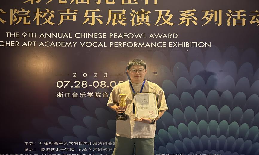 我校学生杨惊涛荣获第九届孔雀杯全国高等艺术院校声乐展演铜孔雀杯
